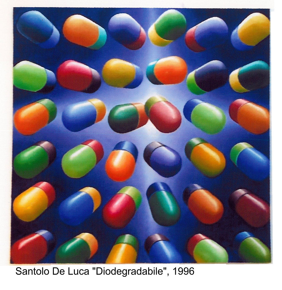 Come in “ Diodegradabile”, che è il titolo della mia prima opera con le pillole del 1996, presentata un anno dopo alla Annina Nosei Gallery di New York nella mia personale “Spirit & Matter Speculation”, progetto nel quale dichiaravo e rappresentavo, tra l’altro, il definitivo primato in termini di affermazione, della materia sullo spirito. Dell’oggetto prodotto, sui contenuti espressi.
